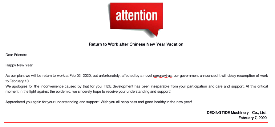 Return to Work at Feb 10, 2020 after Chinese New Year Vacation